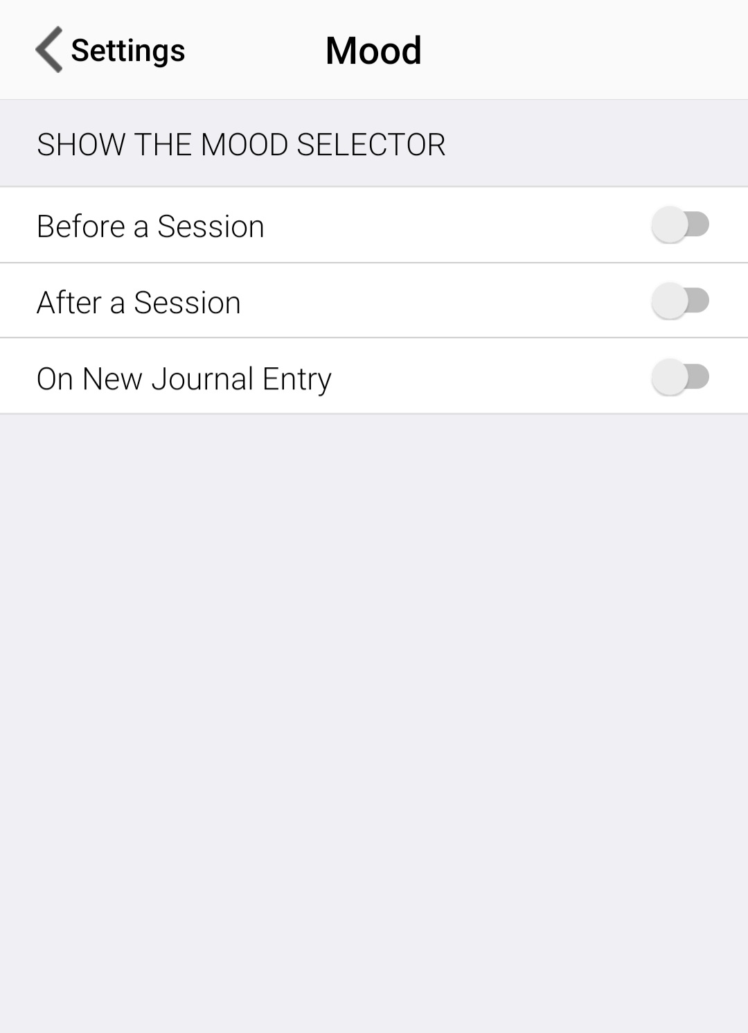 V položce menu v nastavení - MOOD si můžete nechat vypnuté zaznamenávání své nálady dle vlastního uvážení. Já nechávám vypnuté, pro tréninky stačí to, co nastavené je v předchozím návodu.