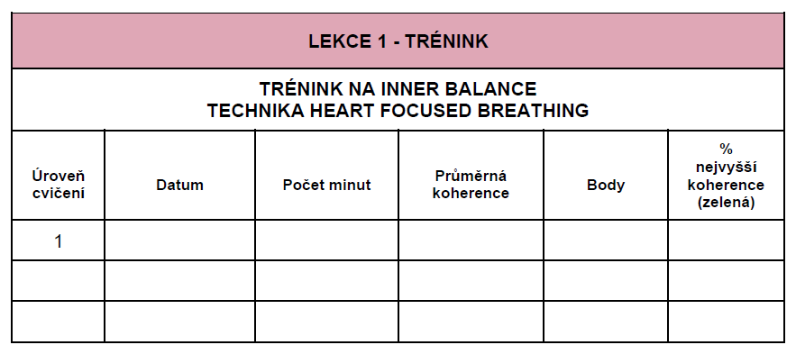 Tento pracovní list se nachází samostatně pro každou lekci kurzu. Má 3 řádky pro vyplnění záznamu tréninku, protože lekce lze procházet i jednou za 3 dny.